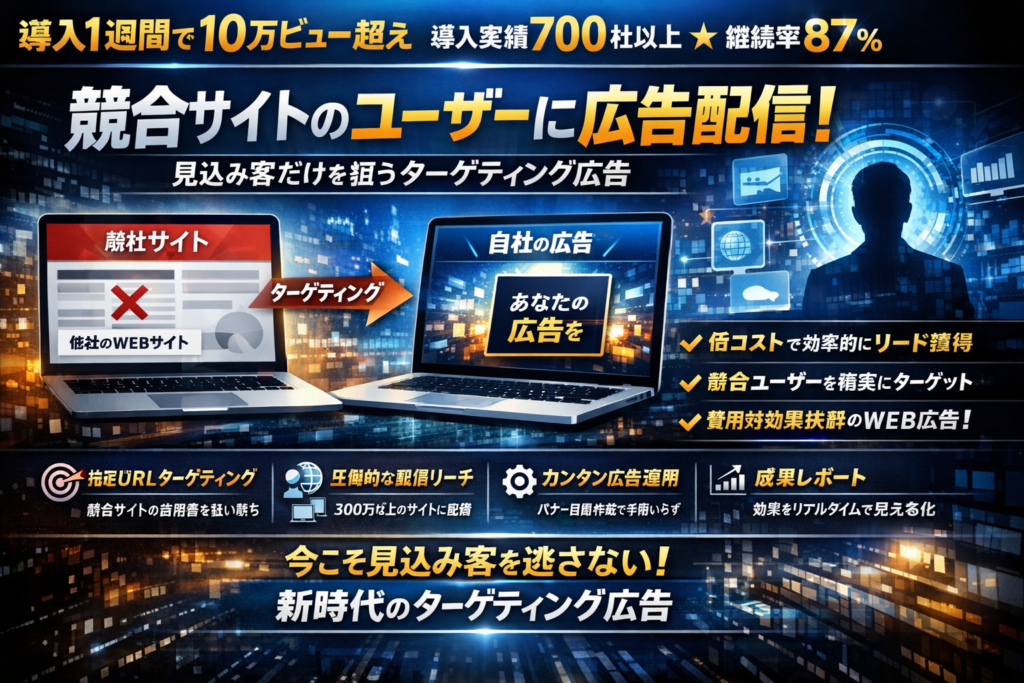 導入1週間で10万ビュー超え 競合サイトのユーザーに広告配信|見込み客を狙うターゲティング広告とは【導入700社・継続率87%】