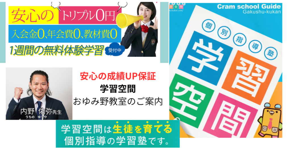 学習空間おゆみ野教室|入会金・年会費・教材費0円&成績アップ保証の個別指導塾【千葉市おゆみ野】