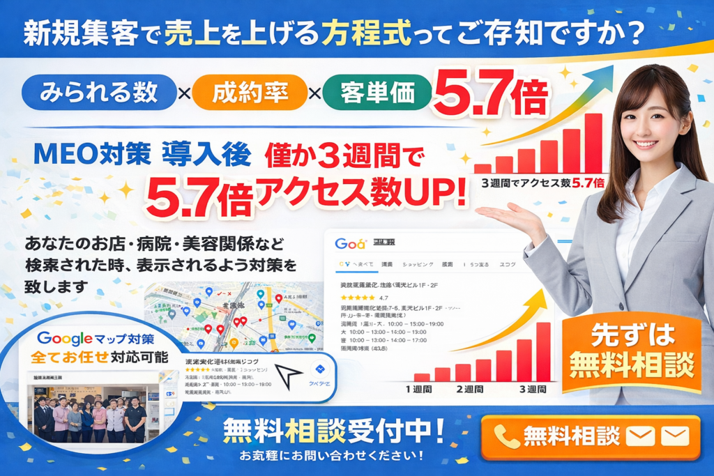 【MEO対策】3週間でアクセス5.7倍|Googleマップ集客で売上UP・無料相談受付中