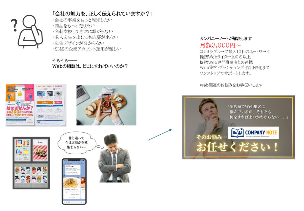 COMPANY NOTE web広告とは 2026 3/04 編集部おすすめ 2026-03-04 お問い合わせ PRアイコン作成 編集部おすすめ よかったらシェアしてね! URLをコピーしました! URLをコピーしました! カンパニーノート|中小企業のWeb集客・求人・ブランディング戦略 建築士・田野恵さんが語る「三希工房」誕生の物語|建築×介護リフォームで叶える“家で暮らし続ける”住まいづくり【第一部】 関連記事 福祉リフォーム・介護リフォームから一般住宅リフォームまで対応する有限会社三希工房。高齢者やご家族が安心して暮らせる住まいづくりを経験豊富なスタッフがサポートします。 2026-03-13 50万円で開業!千葉市の軽自動車専門中古車ビジネス 2026-02-26 ワードプレス保守点検・管理サービスでサイトを安全運用 更新・バックアップ・セキュリティ対策まで対応 2026-02-24 貴金属買取店をフランチャイズより開業費用を掛けずにOPENする 2026-02-19 貴金属鑑定技術を習得する講座。 金・プラチナの真贋と価値を見極め、高値売却の可能性も。ZOOM全国受講、3時間〜半日、受講費10万円(税抜)。一生物のスキルを学ぶ 2026-02-18 白いゴミ・茶色の湯あかが浮くお風呂を徹底洗浄|何でも鑑定団でも特集された クリーンパートナーがプロの風呂釜配管洗浄を施行致します 2026-02-18 株式会社BiiMii Media Partner コレミラグループのフランチャイズは新規事業におすすめ?メディア運営のビジネスモデルや再現性は?徹底調査! 2026-02-16 アイコン作成 2026-02-12